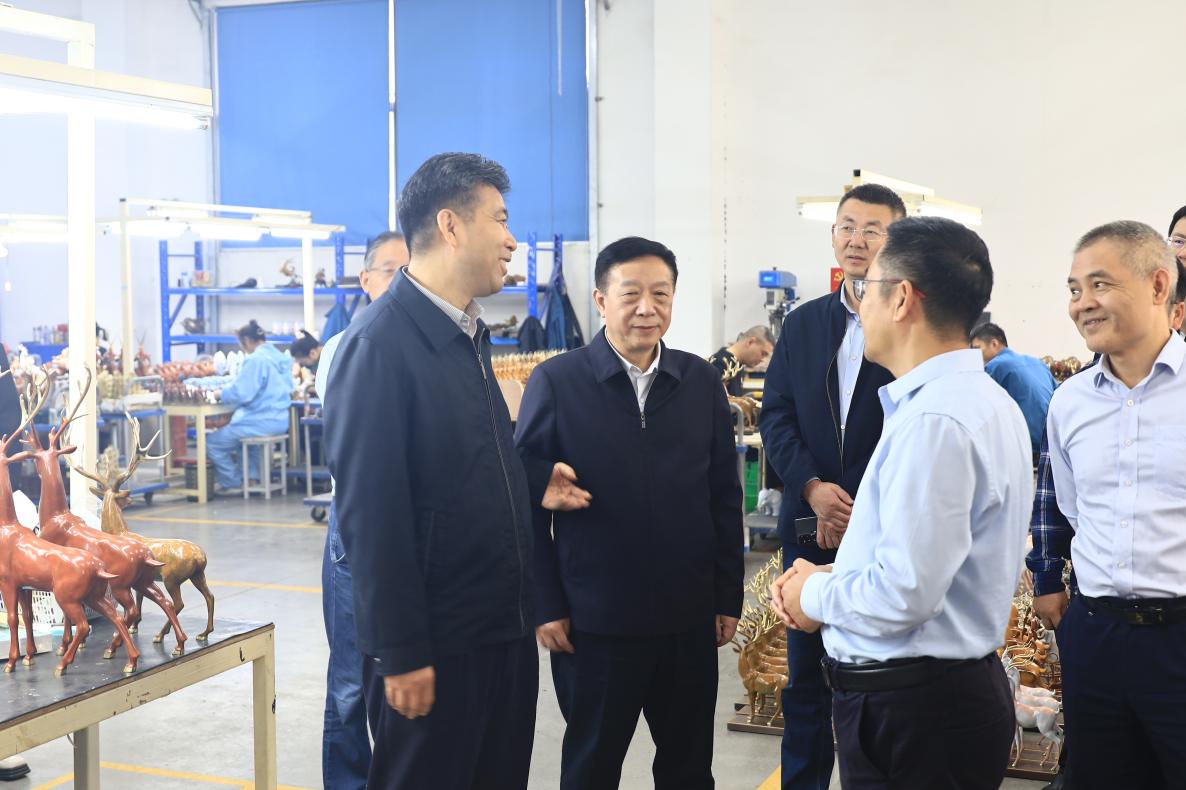 公司負責人郭飛陪同參觀并匯報了企業(yè)生產(chǎn)經(jīng)營、市場銷售、非遺技藝傳承等情況。調(diào)研組深入車間詳細了解銅工藝品制作技藝、工藝傳承創(chuàng)新,曲福田副主任對我公司把傳統(tǒng)工藝和現(xiàn)代創(chuàng)意有機結(jié)合做法給予充分肯定,并就優(yōu)化產(chǎn)品結(jié)構、提升產(chǎn)品競爭力與公司負責人進行交流探討,他希望銅官府進一步強化品牌培育,用匠心延續(xù)銅工藝的“金”字招牌。